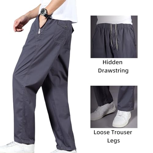 Fabric type: 100% CottonCare instructions: Machine WashOrigin: ImportedClosure type: Drawstring【Adaptive Comfort Waistband】Easetactic - flex fit zipper-pocket pants engineered with an elasticized waist system incorporating internal drawstrings for personalized adjustment ensuring all-day ease of movement without constriction during tasks or extended wear. Puliam easetactic - flex fit zipper-pocket durable pants men's stretch cargo with elastic waist【Mobility Design】Puliam easetactic - flex fit zipper-pocket durable pants feature deep crotch & loose thigh design for unrestricted movement - perfect for sitting, bending or driving all day. Easetactic flex fit zipper-pocket durable pants【Premium Cotton Fabric】The puliam pants for men crafted from 100% breathable cotton offering exceptional softness against the skin enhanced tough wear resistance that maintains integrity through repeated laundering cycles【4 Practical Pockets】Puliam mens stretch pantfor work four functional pockets to keep your essentials secure and easily accessible. 2 front zipper pockets - safe storage for valuables. 2 buttoned back pockets - practical storage for everyday essentials. plush functional trousers with pockets【Comfortable and Versatile】Puliam motion cargo pants blends relaxed straight-leg tailoring with clean contemporary lines suitable for professional settings outdoor activities or casual occasions while providing optimal airflow and non-restrictive comfort. Puliam mens stretch pant for work