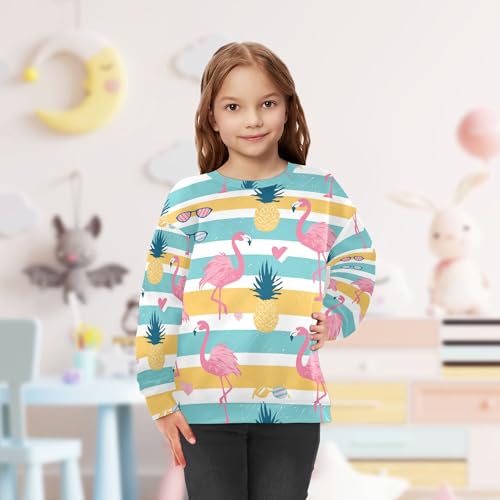 JUNZAN Flamingoes Pineapples Stripes Kids Boys Hoodie Sweatshirt Crewneck Kids Hoodies Boys Sports 4T 6