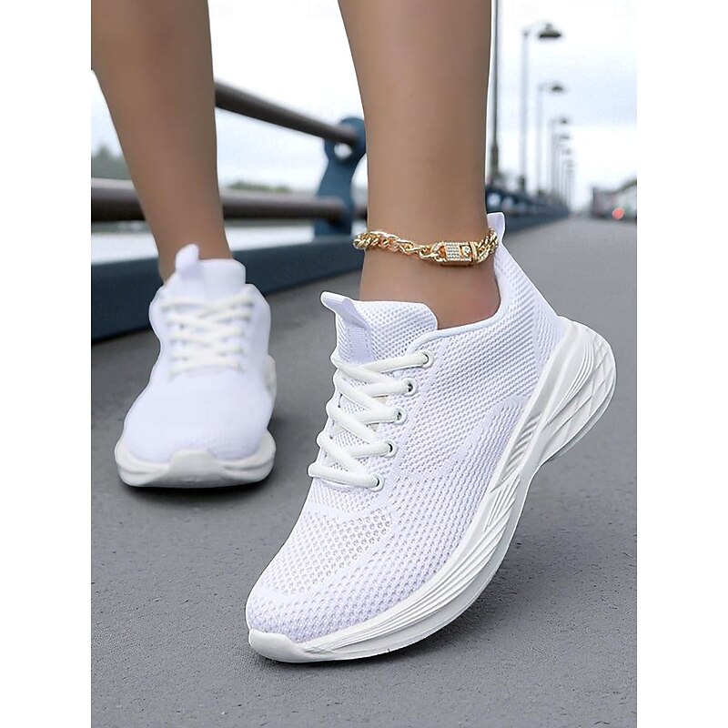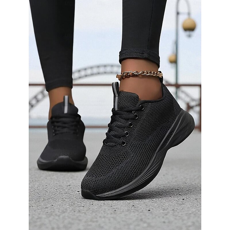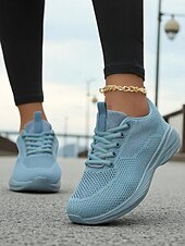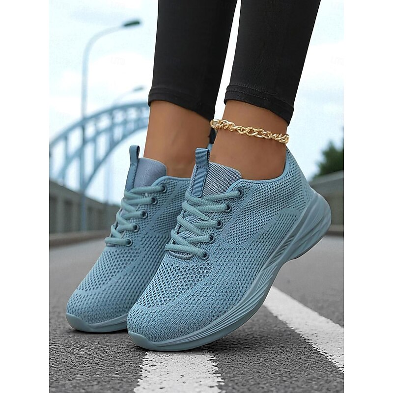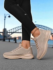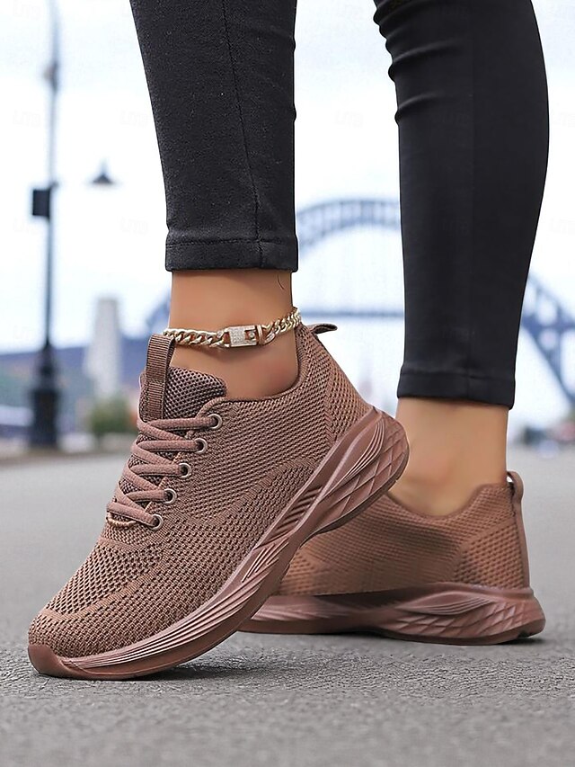 More information about Women's Coffee Flyknit Lace-Up Sneakers with Breathable Mesh Upper and Cushioned Sole, Lightweight Casual Walking Shoes for Running, Travel & Everyday Wear