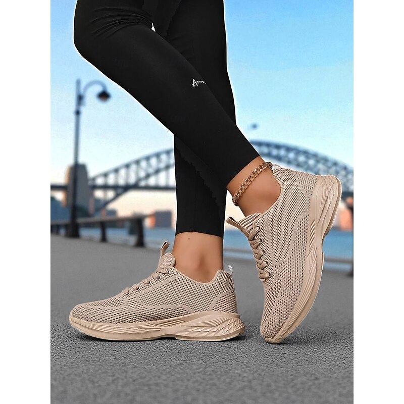HOT ! Women's Coffee Flyknit Lace-Up Sneakers with Breathable Mesh Upper and Cushioned Sole, Lightweight Casual Walking Shoes for Running, Travel & Everyday Wear