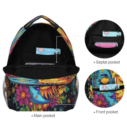 Colorful Moon Sun Flower Backpack for School Boys Girls Adults Kids Bookbag Laptop Bag 15L 7