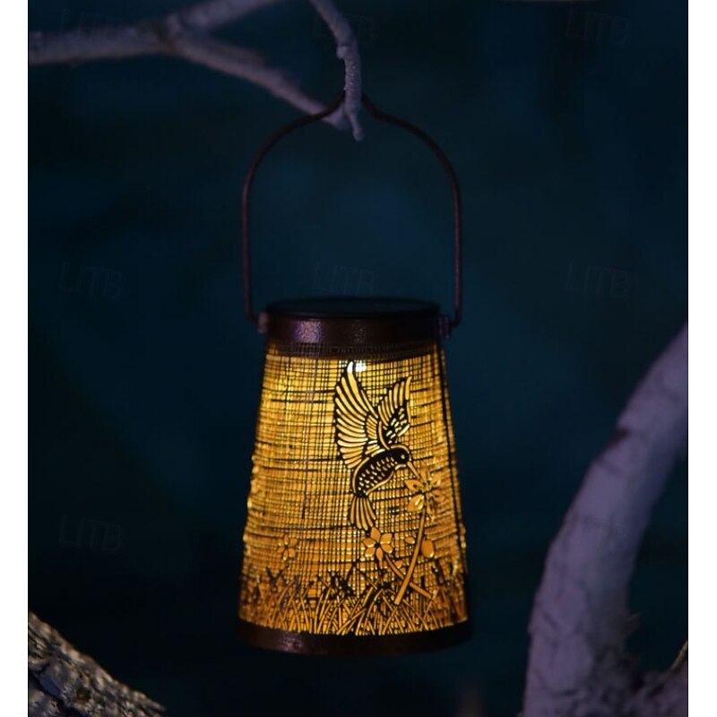 1 Pc outdoor waterproof solar butterfly hummingbird dragonfly hollow iron lantern courtyard garden lawn park tree hanging lamp projection lamp landscape viewing lights 1