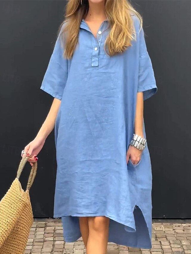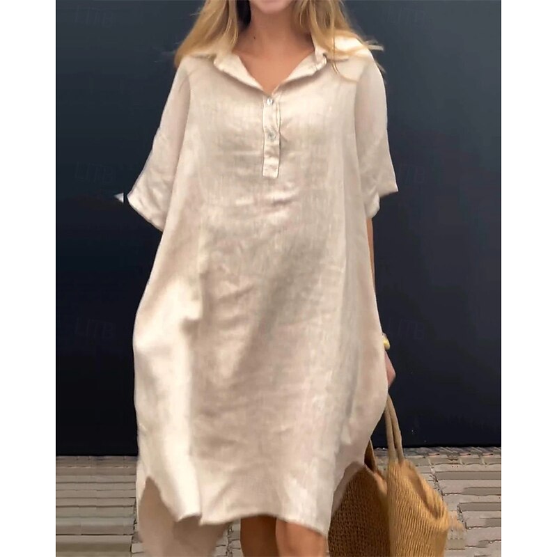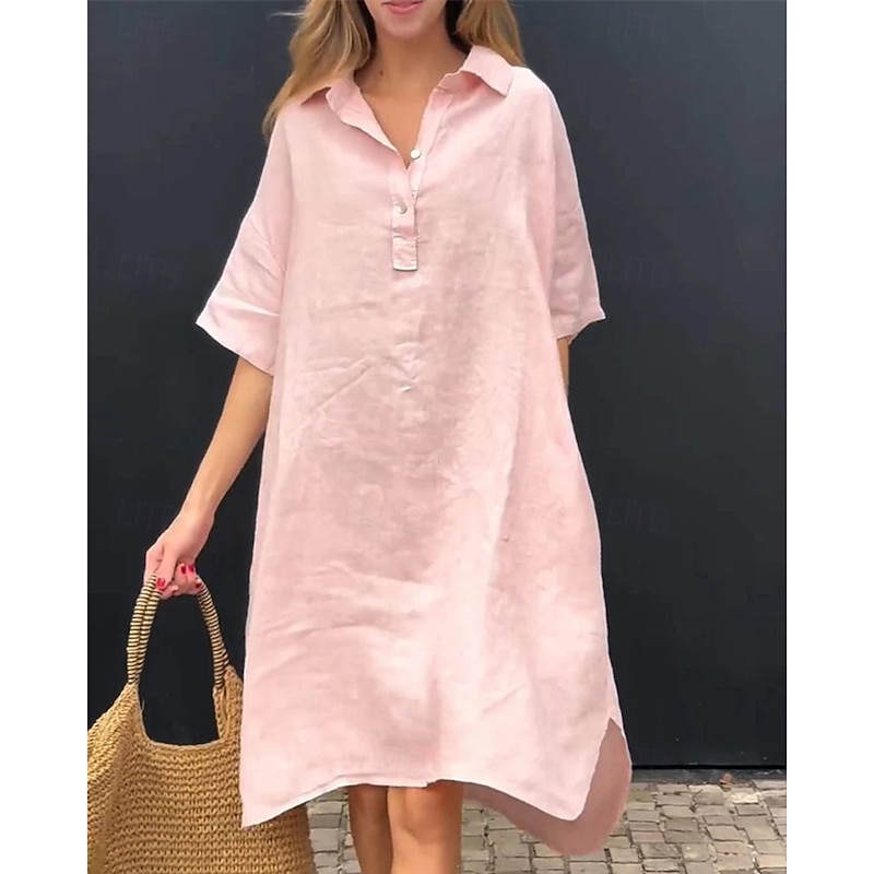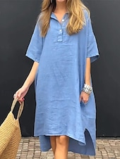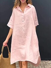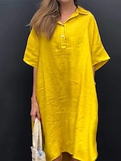 More information about Women's Long Dress Maxi Dress Linen-Inspired Dresses Shirt Dress Casual Dress Stylish Casual Vacation Daily Date Regular Fit Plain Short Sleeve Lapel Yellow Pink Blue Apricot Summer Spring