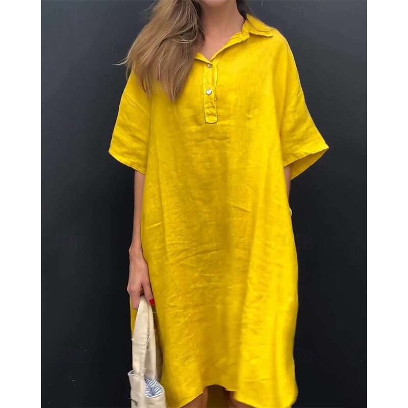 Women's Long Dress Maxi Dress Linen-Inspired Dresses Shirt Dress Casual Dress Stylish Casual Vacation Daily Date Regular Fit Plain Short Sleeve Lapel Yellow Pink Blue Apricot Summer Spring 10