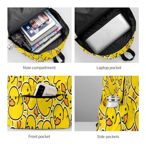 Cute Rubber Ducky Laptop Backpack For Men Women, Yellow Cartoon Ducks Lightweight Daypack Bookbag For Daily Commutes Business Travel Hiking 5