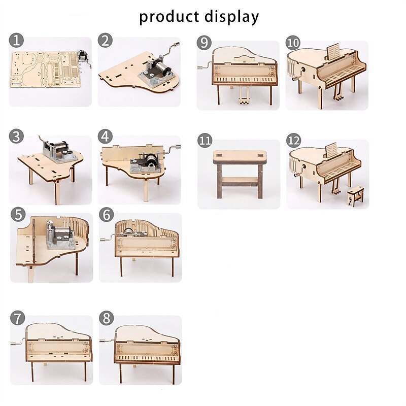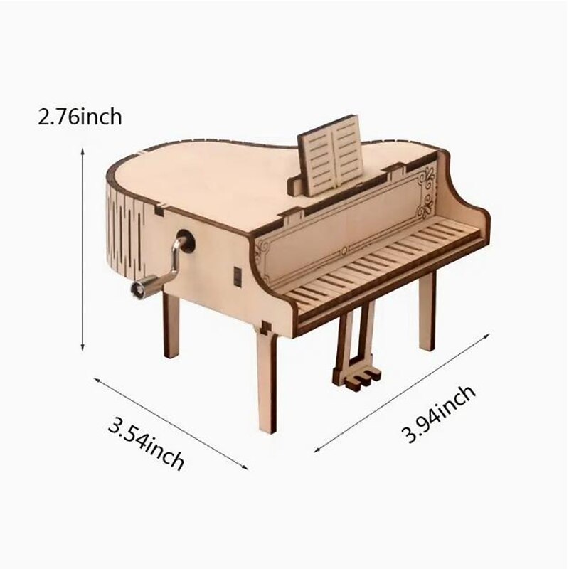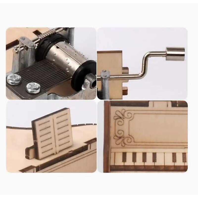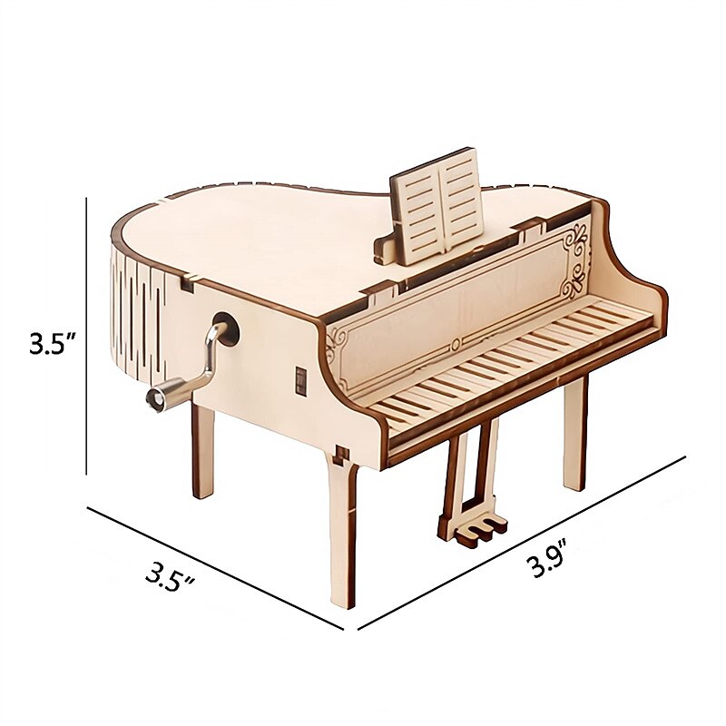 3D Puzzles for Adults Kids DIY Music Box - Piano Hand Crank Engraved Musical Box Wooden Building DIY Kits for Adults Desk Display Gift for Boys/Girls (Piano) 9