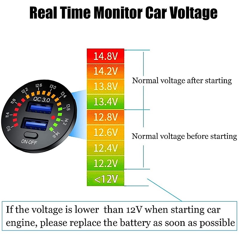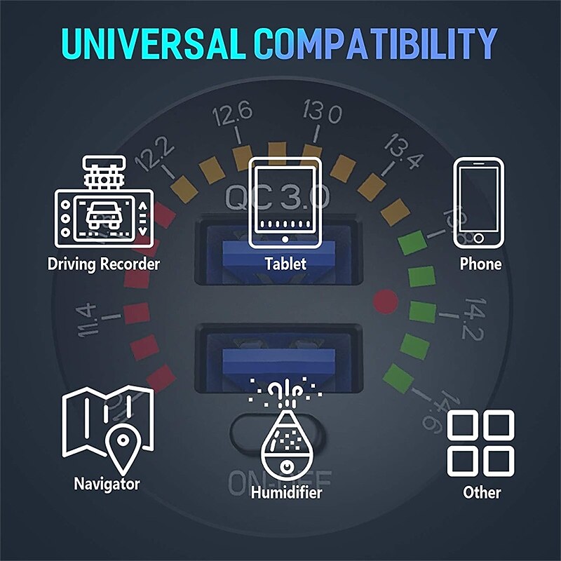 $43.99 - 36W Dual USB QC3.0 Car Charger 12V USB Outlet Quick Charging Power Socket with Colorful Digital Voltmeter & ON/Off Switch & 10A Built-in Fuse for Vehicles Motorcycles Marine Boat ATV Bus Truck 2025. Shop for cheap Car Charger online? Buy at lightinthebox.com on sale today!