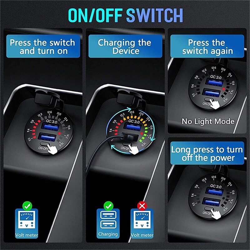 This 36W Dual USB QC3.0 Car Charger 12V USB Outlet Quick Charging Power Socket with Colorful Digital Voltmeter & ON/Off Switch & 10A Built-in Fuse for Vehicles Motorcycles Marine Boat ATV Bus Truck combines elegant design with practical functionality. Every detail has been carefully considered to ensure you get the supreme possible experience. The supreme construction means this product will serve you well for years to come.
