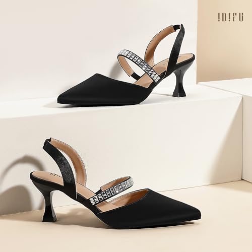HOT ! IDIFU IN3 Rhinestone Kitten Heels Closed Pointed Toe Low Strappy Dress Shoes for Women Bride Wedding Bridal Prom Heels Cute Trendy Dressy Short Slingback Pumps