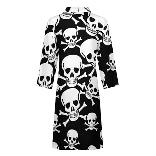 Crossbone Skull Head Mens Nightgown Lightweight Knee Long Bath Robe Spa Bathrobe Loungewear 1