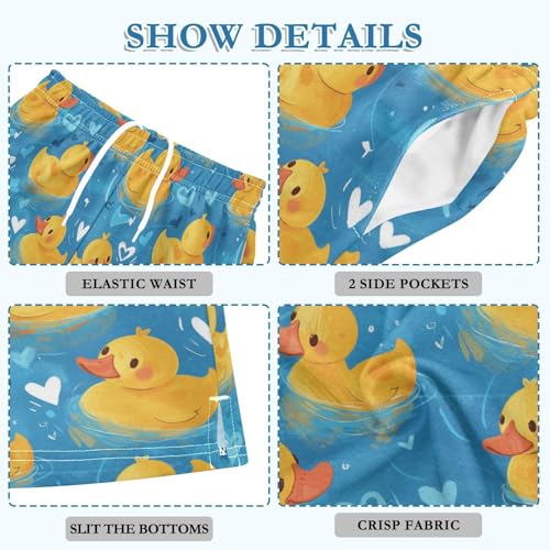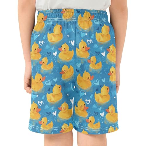 Boys Athletic Shorts with Pockets Yellow Duck Drawn Running Basketball Shorts for Youth Elastic Waist Size 7-8 3