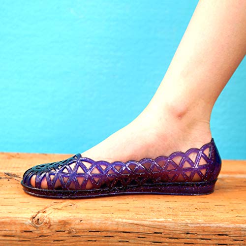• Start your day under the sun on the right foot with these color-changing jelly shoes. Watch as they magically change from Clear to glistening Purple with sunlight