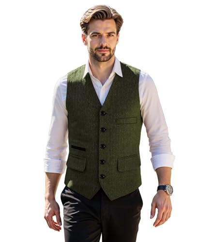 Men Tweed Suit Vest,Herringbone Slim Fit Casual Vest for Men 5