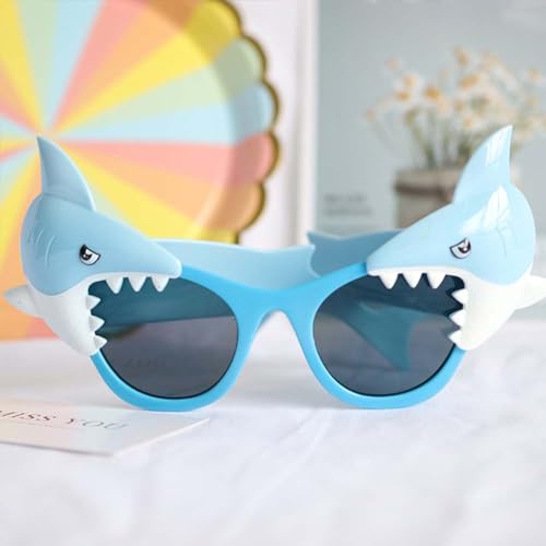 • 🦈Cute Kids Sunglasse: Cool blue shark sunglasses, Great for travel and party.