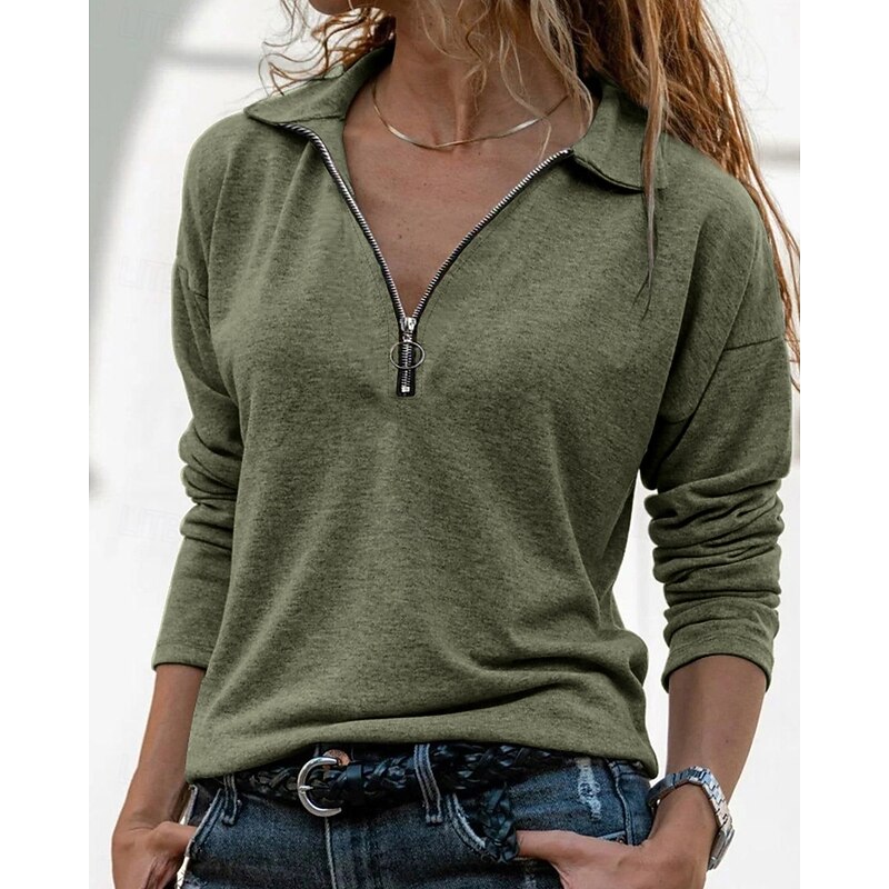 Highlights - Stay stylish and comfortable during the summer season with our Women's Casual Long Sleeve Shirt. - Designed with a convenient zipper and a classic shirt collar neckline for a chic look. - Perfect for daily wear, this regular fit top will keep you looking on-trend.