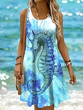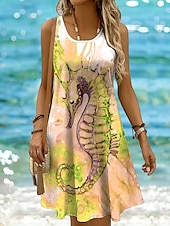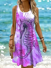 More information about Women's Mini Dress Sundress A Line Dress Off The Shoulder Dress Vacation Casual Holiday Beach Regular Fit Ombre Graphic Animal Sleeveless Crew Neck Yellow Pink Blue Purple Summer
