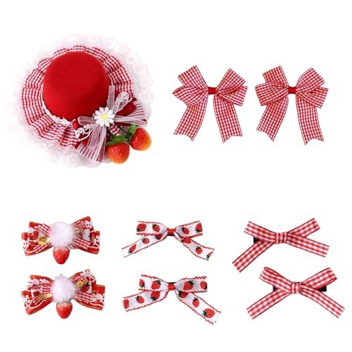 More information about 2PCS Delicate Bow Plaids Strawberry Side Clip Top Hat for Sweet Girls Lace Strawberry Bowler Hat