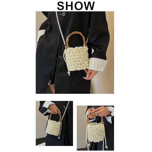 Beaded Purse Pearl Bamboo Beaded Handbag for Women Drawstring Dressy Wedding Guest Bag Party Bridal Accessory 6