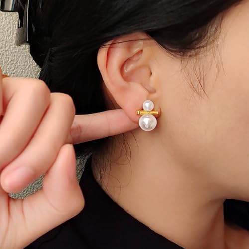 Bi&Yamigeo Double Pearl Drop Stud Earrings,White Round Pearl Pendant Dangle Jewelry for Wedding Bridal Bridesmaid Birthday for Women