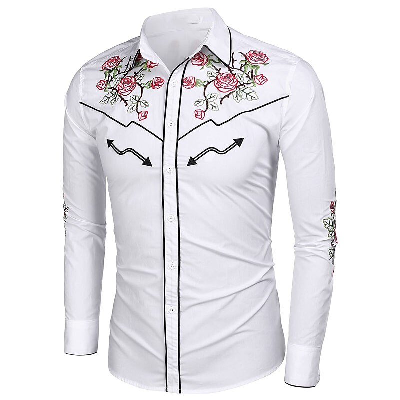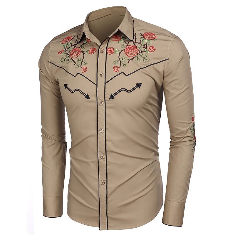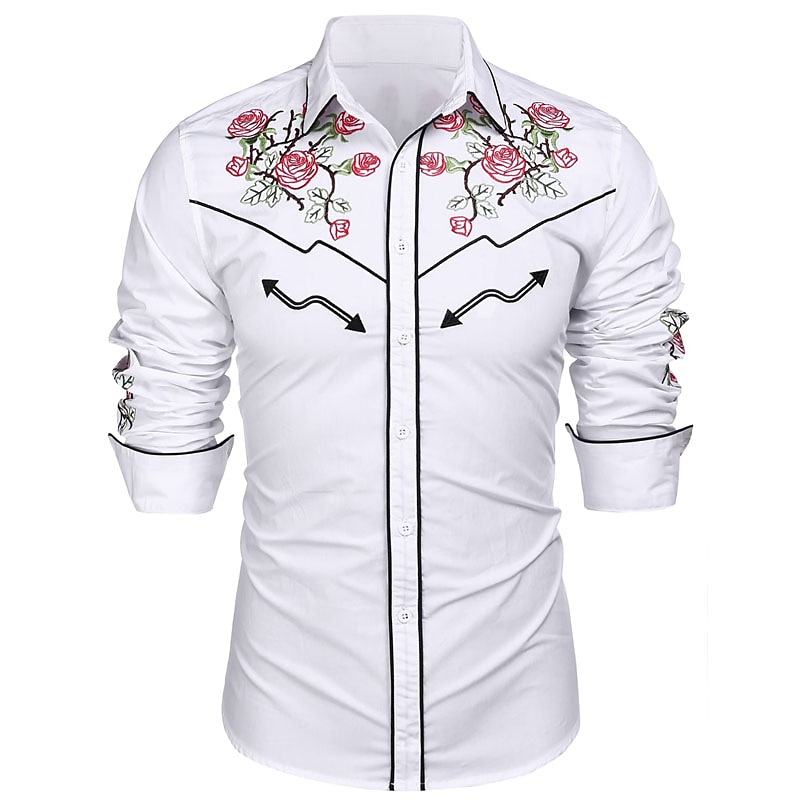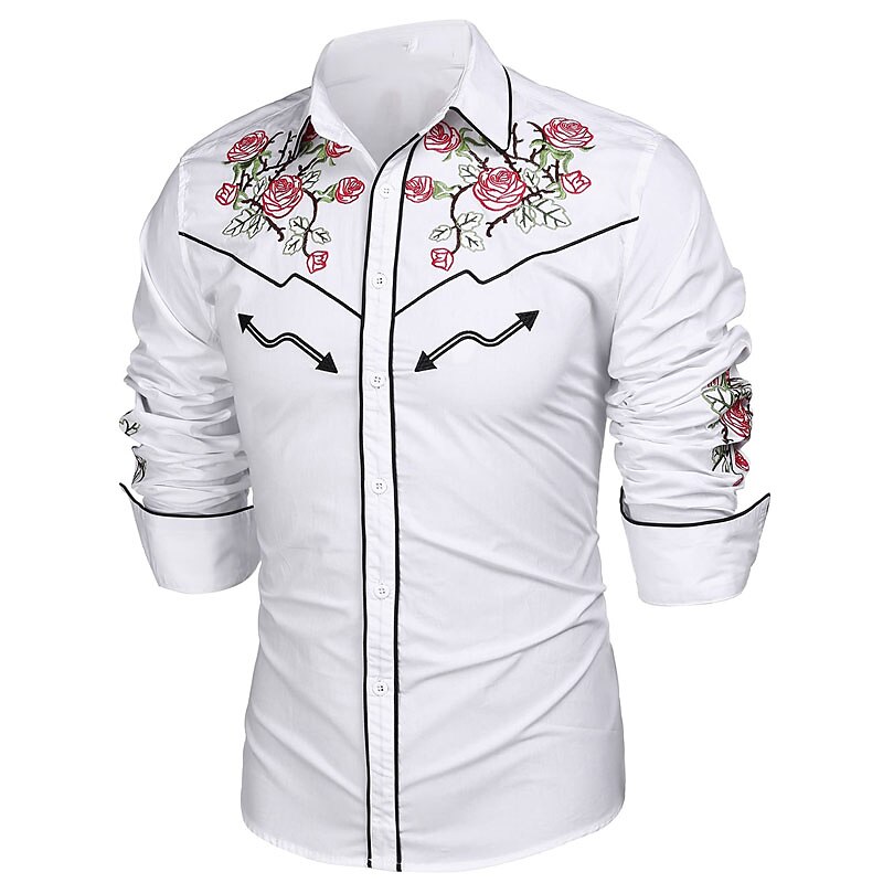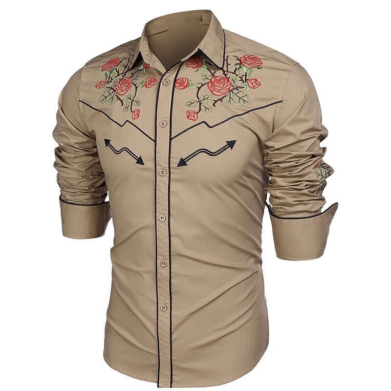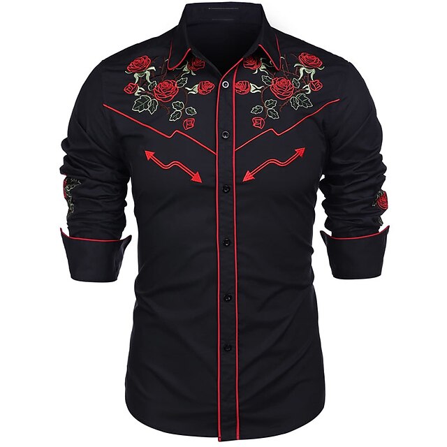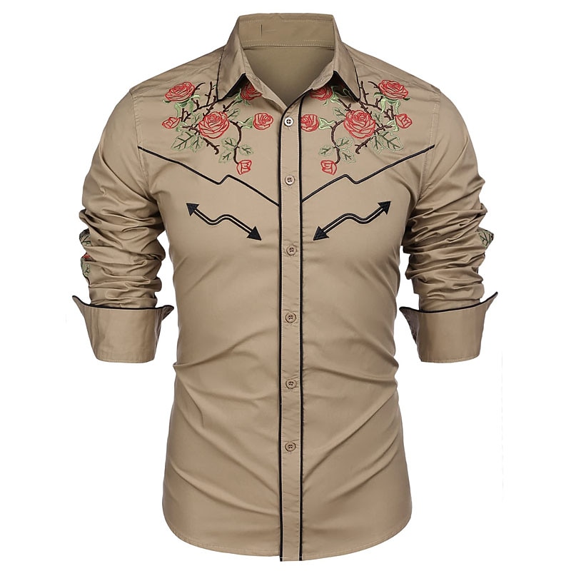More information about Men's Graphic Prints Rose Shirt Western Shirt Cowboy Shirt Long Sleeve Fashion Streetwear Designer Outdoor Daily Fall & Winter Turndown Print Button-Down Black White Khaki