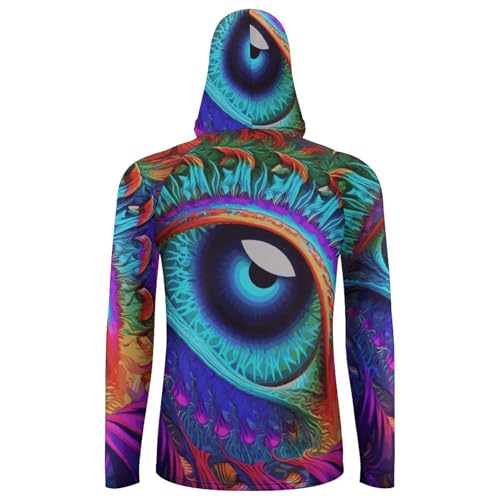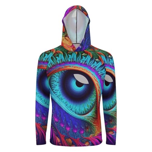 Men's Sun Shirts UPF 50+ Rash Guard Long Sleeve Sun Protection Hoodie Psychedelic Eyes Lightweight Shirt L White