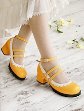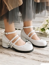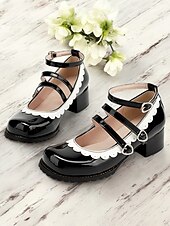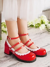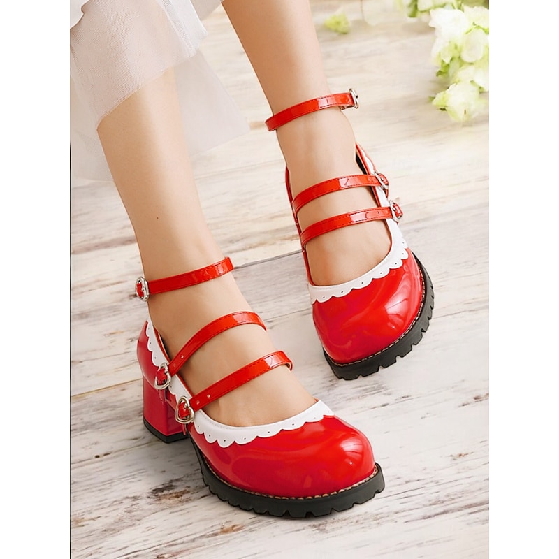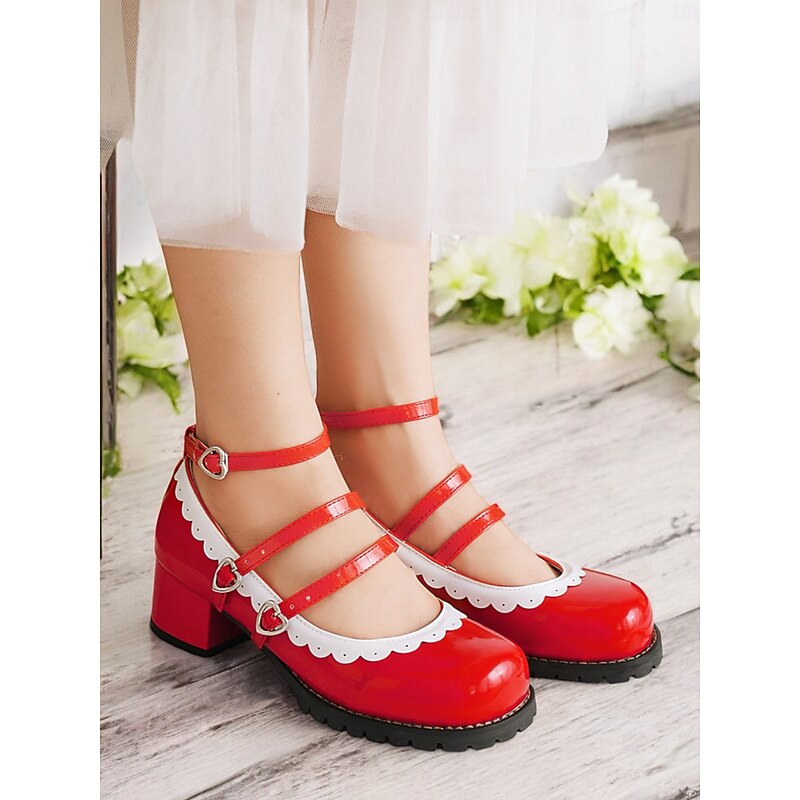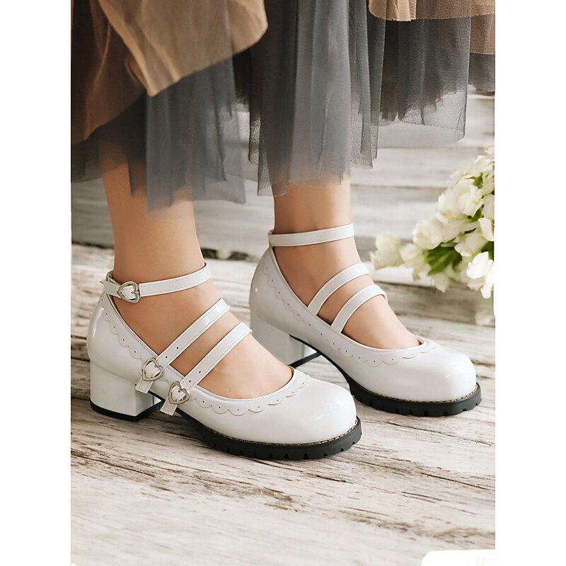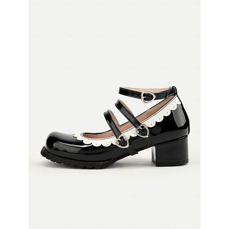 Featuring adorable heart-shaped buckles and double instep straps, these shoes offer an elegant yet playful look. The ankle strap ensures a secure fit while highlighting the shoe's retro styling. The chic Mary Jane silhouette paired with a low block heel lends a touch of sophistication suited for vintage or cosplay outfits.