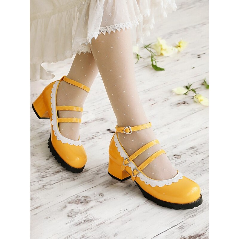These Women's Scalloped Mary Jane Block Heels are crafted from high-quality patent faux leather, providing a durable and glossy finish. The PU upper is complimented by a synthetic leather lining, ensuring comfort and ease of maintenance. The rubber outsole offers flexibility and support for a comfortable wear.