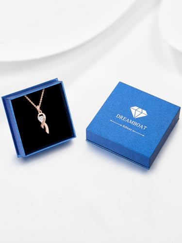 HOT ! Dreamboat Sterling Silver Breast Cancer Necklace for Woman Pink Ribbon Pendant Necklace Cancer Awareness Hope Breast Cancer Survivor Gifts Jewelry