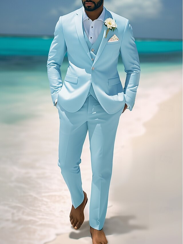 $122.99 - Men's Casual Beach Wedding Suits Notch Lapel Sky Blue Fashion Casual Solid Colored Standard Fit 3 Piece Single Breasted One-button 2025. Shop for cheap Casual Suits online? Buy at lightinthebox.com on sale today!