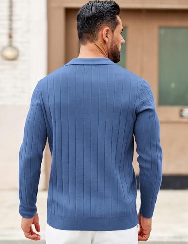 COOFANDY Mens Polo Sweaters Long Sleeve V Neck Knit Polos Lightweight Casual Pullover Sweater 2