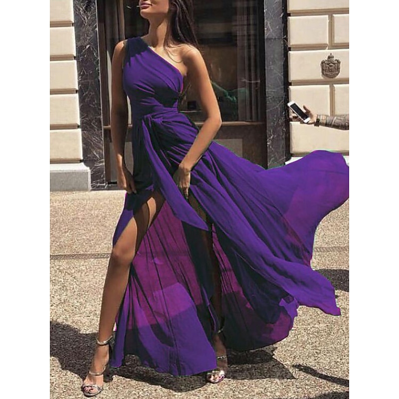 Highlights [Fabric] : Made from high-quality polyester, this dress offers a lightweight and breathable feel, perfect for warm summer days. The chiffon-like material enhances its ethereal and airy appearance, delivering comfort and style. [Fit] : The dress features a regular fit with a flattering A-line silhouette that complements a variety of body types. The micro-elasticity of the fabric ensures a comfortable wear, gracefully hugging the body's curves. [Design Highlights] : This elegant maxi dress boasts a sexy V-neck and a sleeveless design, complete with a striking split that adds a bold and fashionable edge. The asymmetrical cut and draping at the waistline create a sophisticated hourglass shape, making it an ideal choice for formal events or a night out. [Occasions] : Perfect for weddings, parties, and other formal gatherings. Its elegant and sexy style makes it a standout piece for special occasions, ensuring you look both modern and refined. [Size Range] : Available in sizes S, M, L, and XL, catering to a diverse range of body figures and preferences. Available in stunning shades of green, red, purple, and yellow.