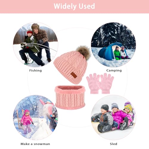 • Kids Winter Set: Boys girls' cold weather accessories sets includes 1 kids winter pom pom beanie hat, 1 kids knit thick warm fleece lined neck warmer and 1 pair of kids winter gloves set, very suitable for 3 to 6 years old boys and girls
