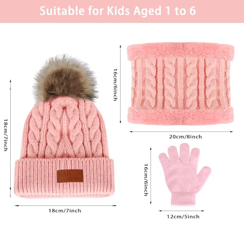 Kids Hat Scarf Gloves Set, Kids Winter Beanie Hat Scarf Gloves Set with Knit Thick Warm Fleece Lined for 1-6 Years Old 1