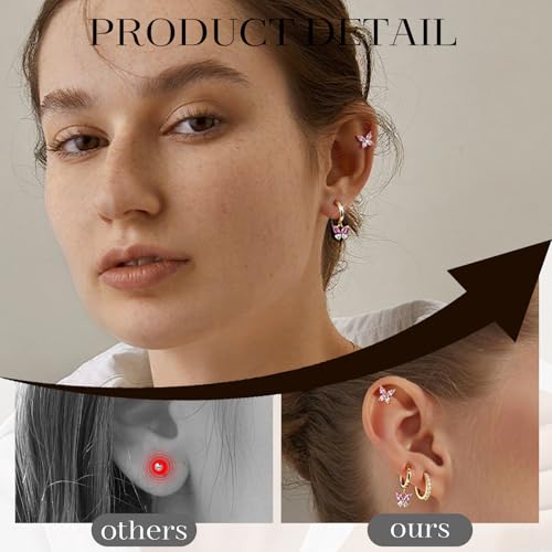 HOT ! 3pcs elegant and stylish golden butterfly-shaped pink zirconia stud earrings for women。Surgical Steel Drop Dangle Small Huggie Hoop Earrings Set 14K Gold Plated Hypoallergenic CZ Stud Earrings for Women Waterproof and Non Tarnish Rectangle