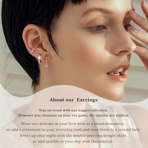 More information about 3pcs elegant and stylish golden butterfly-shaped pink zirconia stud earrings for women。Surgical Steel Drop Dangle Small Huggie Hoop Earrings Set 14K Gold Plated Hypoallergenic CZ Stud Earrings for Women Waterproof and Non Tarnish Rectangle