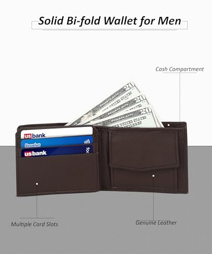 Leatherboss Leather Boys Slim Compact Flap Id Coin Pocket Bifold Wallet with debit credit card holder, Dark Brown 5