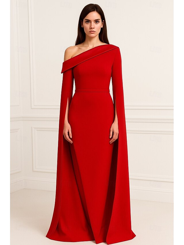 $139.99 - Red Black Sheath / Column Evening Gown Elegant Dress Formal Wedding Floor Length Long Sleeve One Shoulder Mother Of the Bride Dress Stretch Crepe with Pleats 2025 2025. Shop for cheap Ball Gown Evening Dresses online? Buy at lightinthebox.com on sale today!