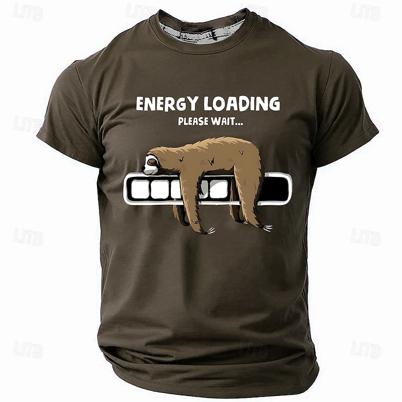 Men's Funny Graphic Sloth T-Shirt - 'Energy Loading Please Wait' Casual Short Sleeve Tee 12