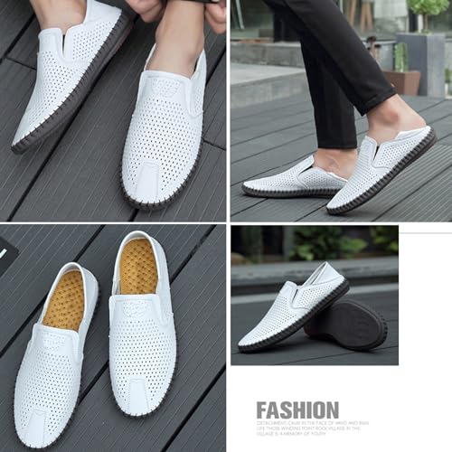 Men's Leather Slip-on Loafers Summer Breathable Hollow Flat Loafers Comfortable Elastic Anti-Slip Soft Sole Walking and Driving Shoes 6