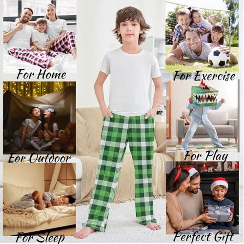 HOT ! visesunny Boys' Pants Green Plaid Pattern Jogger Pants Elastic Waist Long Bottoms Trousers with Pockets L