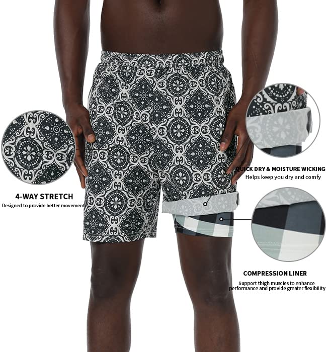 Men's Swim Trunks Quick Dry Swimwear Printed Beach Shorts with Compression Liner Zipper Pocket 6