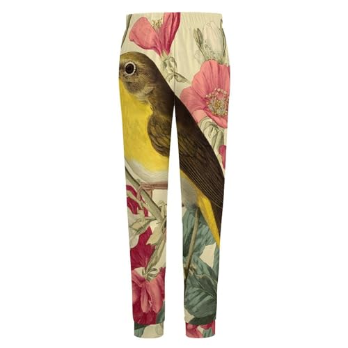 Bird Yellow-Bellied Warbler Vintage Flowers Men's Pajama Pants Lounge Pant Sleepwear PJ Bottoms