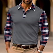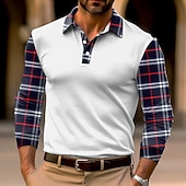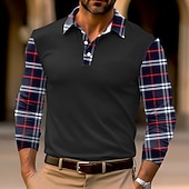 More information about Men's Plaid Polo Shirts Golf Shirt Long Sleeve Polo Shirts Collared Shirts Business Casual WorkWear Formal Wear Festival Wear 3D Print Buttons Fall & Winter Black White Dark Navy