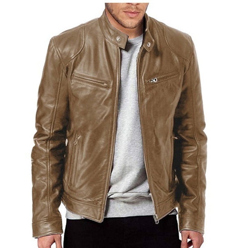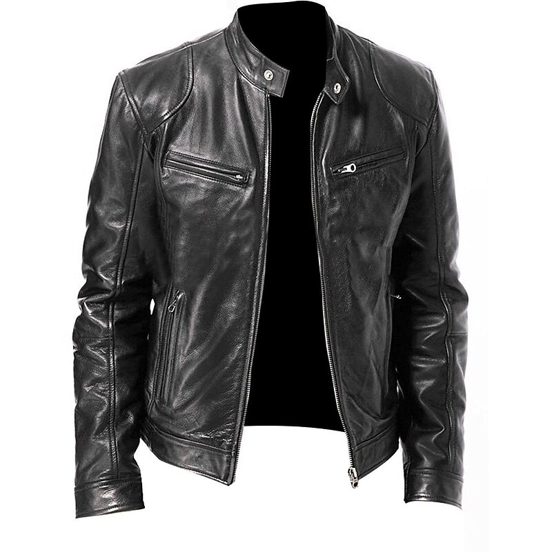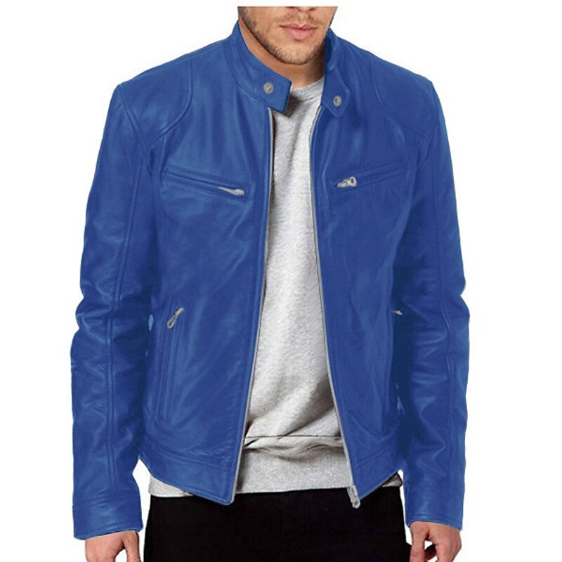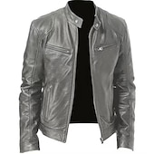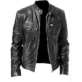 More information about Male Faux Leather Jacket Transition Jacket Biker Jacket Outdoor clothing Casual Daily Windproof Buttons Fall & Winter Zipper Casual Crew Neck Regular Faux Leather Silver Golden Black White Yellow