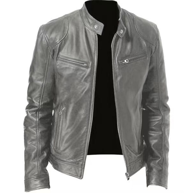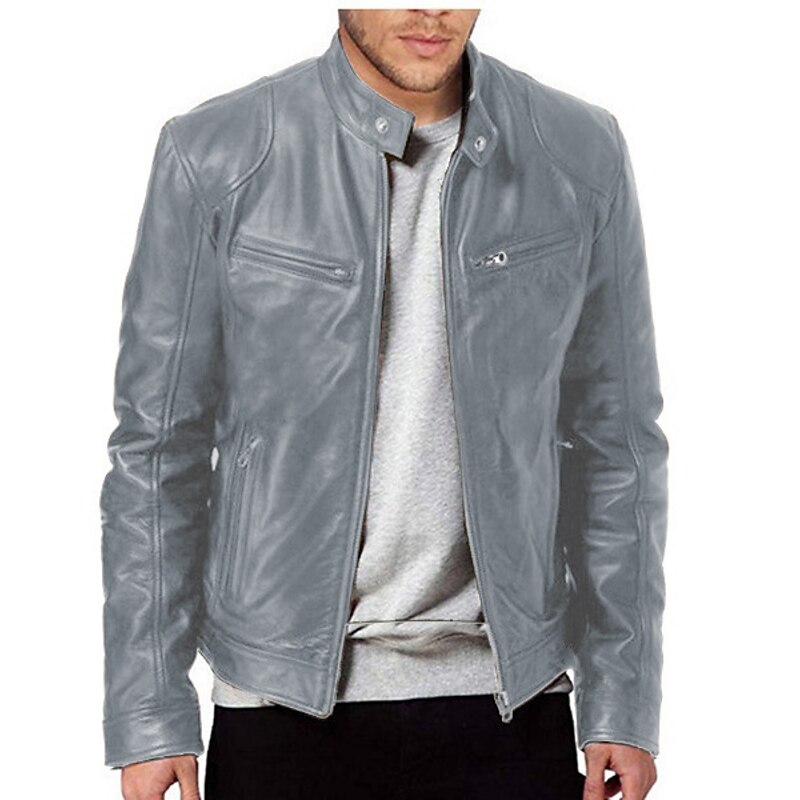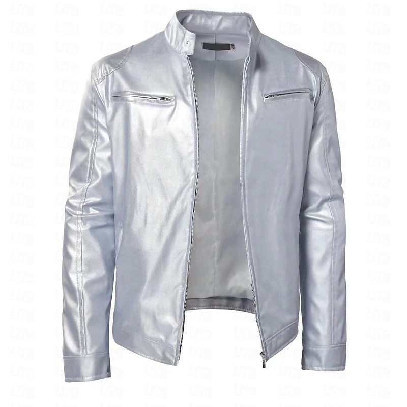 HOT ! Male Faux Leather Jacket Transition Jacket Biker Jacket Outdoor clothing Casual Daily Windproof Buttons Fall & Winter Zipper Casual Crew Neck Regular Faux Leather Silver Golden Black White Yellow