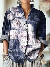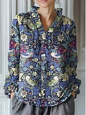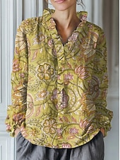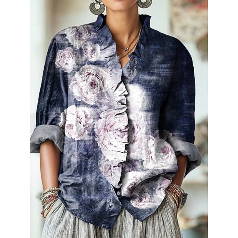 More information about Women's Boho Shirt Floral Graphic Bohemia Vintage Stylish Long Sleeve Regular Tops Daily Holiday Ruffle Denim Blue Yellow Royal Blue Orange Brown Summer Spring Fall