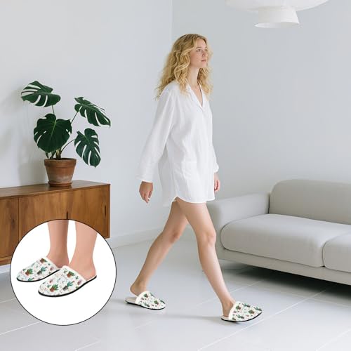 HOT ! Fuzzy Travel Slippers for Women Men Indoor Outdoor Funny Watercolor Garden Plants Print Bedroom Fluffy Slipper Fleece-Lined Fall Winter Warm Cozy Soft Plush House Shoes Holiday Gifts