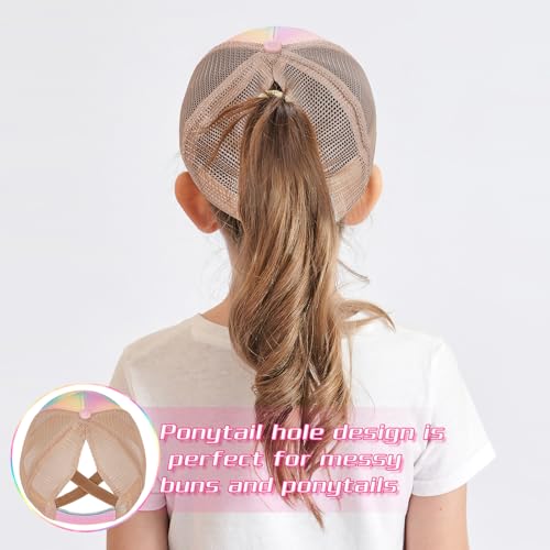 • Pony Tail Hat: Cute girls baseball caps made from mesh polyester are soft, durable, lightweight and breathable. They can be worn for a long time without getting stuffy, gently wash in cold water, hand wash is recommended.