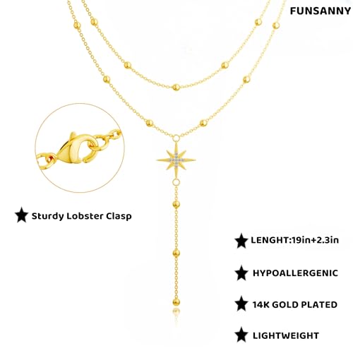 More information about Lariat Gold Necklaces for Women - Dainty Gold Necklace Trendy 14K Gold Plated Hypoallergenic Layered Long Y-Shape Sunburst CZ T-Bar Pendant Drop Chain Necklace Set for Women Non Tarinsh Jewelry Gift