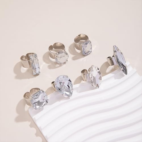 FUTIMELY 7Pcs Chunky Crystal Knuckle Rings Set,Sparkling Geometric Personalized Promise Midi Ring Set,Aesthetic Adjustable Waterdrop Round Rings for Women 4
